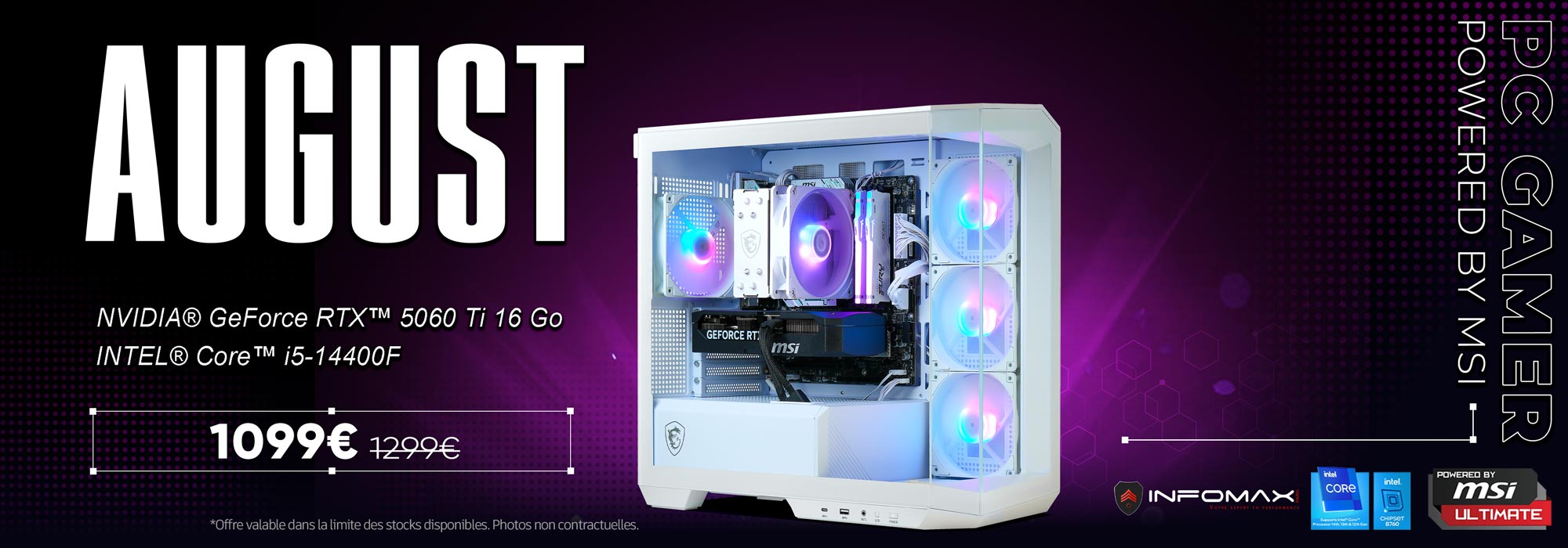 2017 marque un nouveau tournant pour Infomax Paris, la sortie en septembre du nouveau concept d'intégration Gaming, engendre la création d'un nouveau catalogue de configurations, et tourne une page dans l'histoire de la société. Notre objectif, proposer les mêmes services à nos clients avec une nouvelle manière d'acheter. Le souci du détail étant très prononcé chez Infomax, nous proposerons à nos clients de sélectionner LA configuration adaptée à leurs besoins ! Infomaxparis.com, spécialiste assembleur de PC gamer sur mesure. Infomax Paris est un expert en assemblage de PC Gamer et configurations sur mesure.