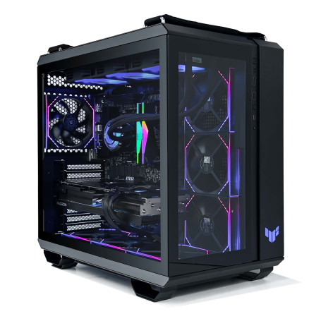 Comme son nom l’indique, le PC Gamer Victini est une configuration pré-assemblée pensée pour les gamers exigeants, logée dans le robuste boîtier ASUS TUF Gaming GT502 en noir, sans ventilateurs supplémentaires pour un design épuré et minimaliste.